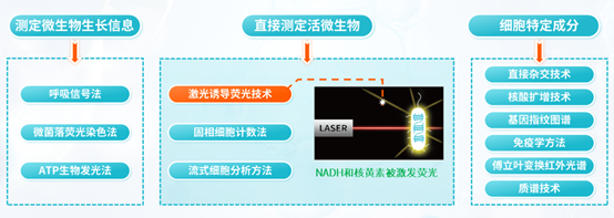 為克服傳統(tǒng)微生物檢測(cè)方法的局限,滿足快速放行的需求,微生物快檢技術(shù)應(yīng)運(yùn)而生??鞕z技術(shù)分為三類:測(cè)定微生物生長(zhǎng)信息、直接測(cè)定活微生物、測(cè)定細(xì)胞特定成分。其中,激光誘導(dǎo)熒光技術(shù)作為一種無(wú)損檢測(cè)技術(shù),在水質(zhì)檢測(cè)中尤為重要,為傳統(tǒng)檢測(cè)方法帶來(lái)革命性的改變。