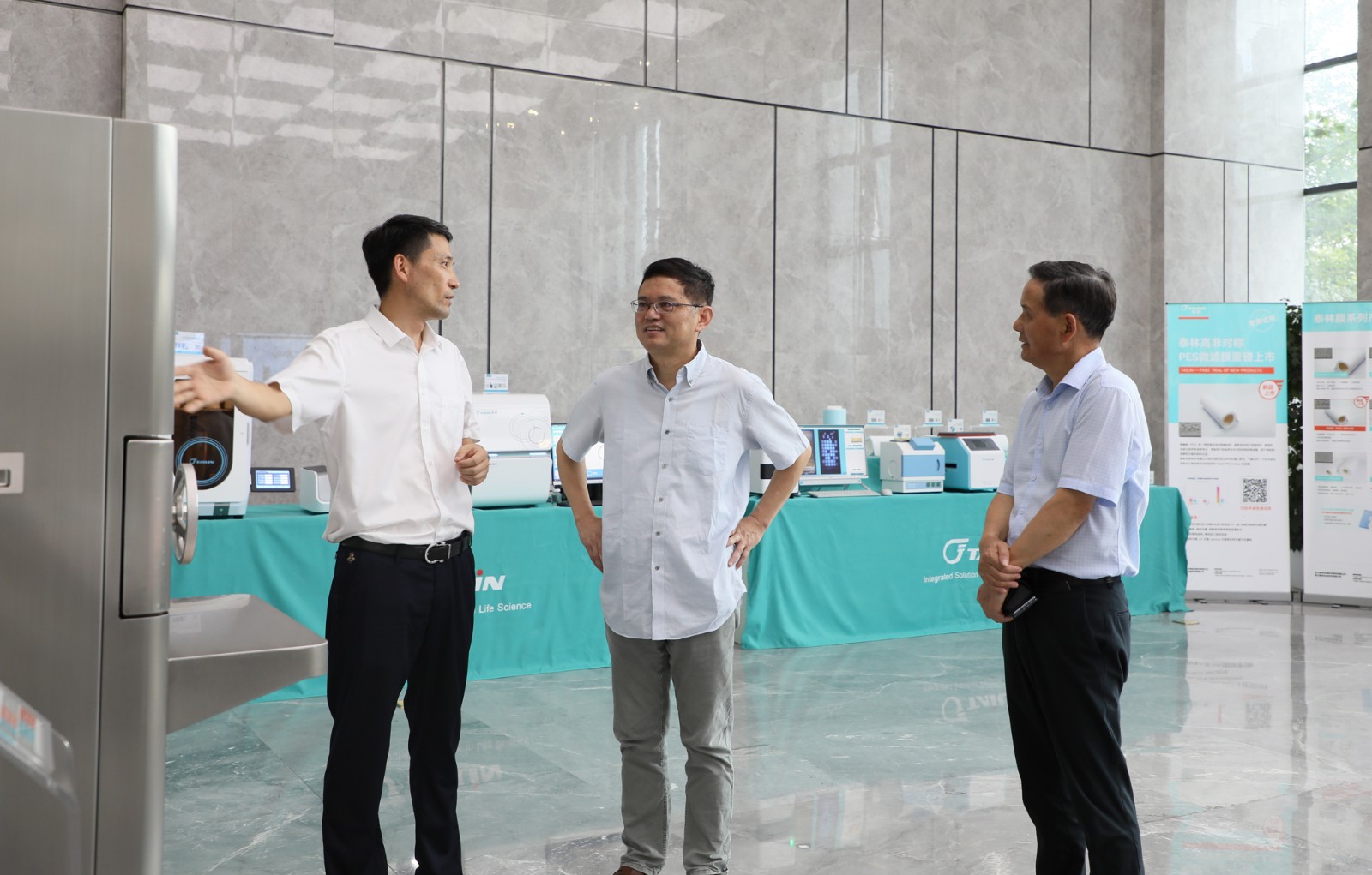隨后,調(diào)研團一行來到泰林生命科學園區(qū),相繼參觀了展廳產(chǎn)品區(qū)、膜技術(shù)生產(chǎn)車間、培養(yǎng)器車間、凍干車間和實驗室。沈總向?qū)<覀兘榻B了公司的技術(shù)成果、業(yè)務(wù)布局、發(fā)展規(guī)劃、創(chuàng)新應(yīng)用案例等情況,調(diào)研團深入感受了“硬科技”加持的制造新力量。