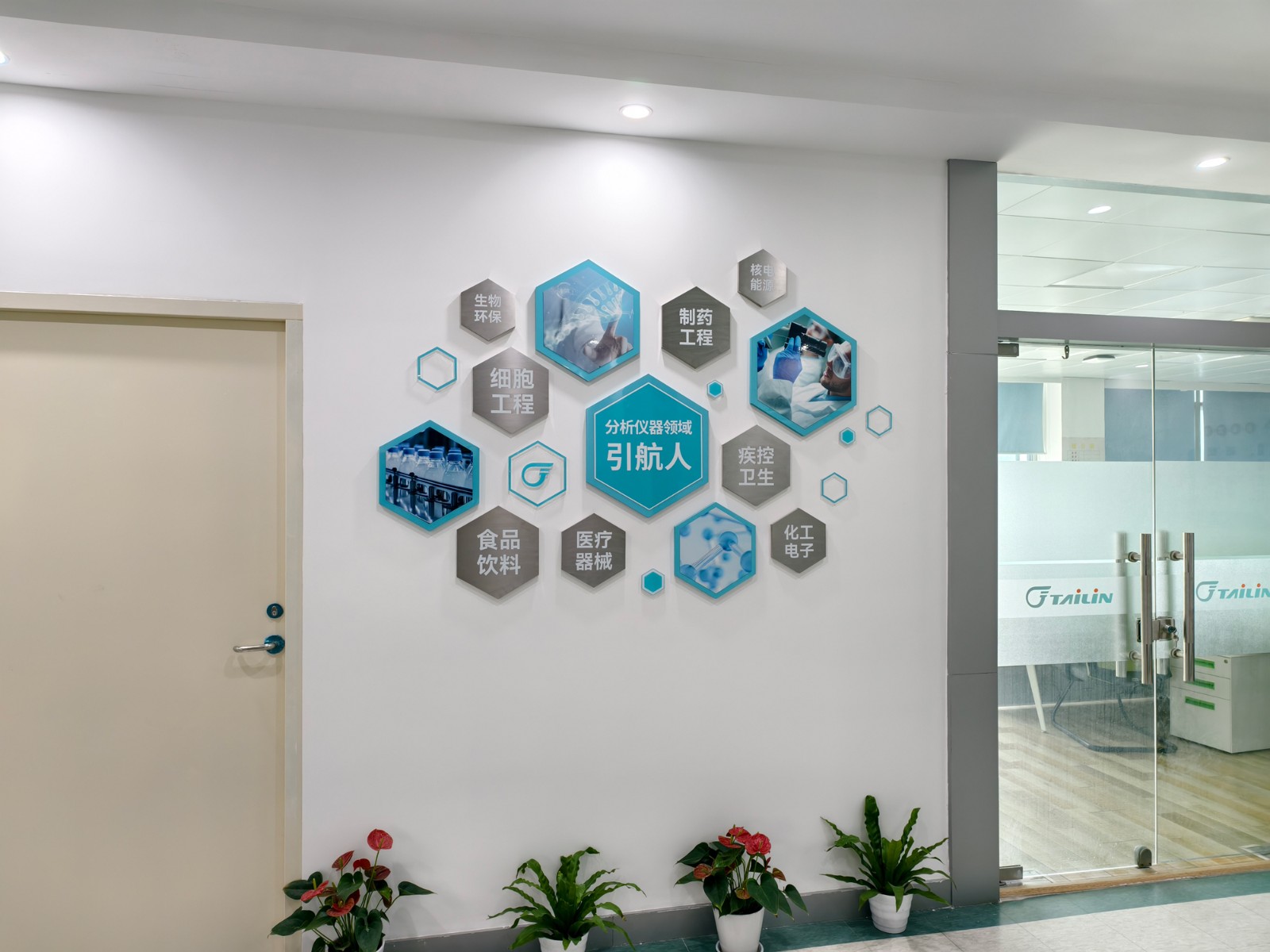 除此之外,分析儀器子公司內(nèi)部的裝潢也煥然一新。一樓大廳形象墻全面升級(jí),企業(yè)標(biāo)識(shí)醒目突出,空間視覺(jué)更顯敞亮開(kāi)闊,彰顯企業(yè)大氣風(fēng)范;移步二樓,參觀路線經(jīng)過(guò)精心優(yōu)化,新增榮譽(yù)墻與員工風(fēng)采展示板塊,將員工成就與企業(yè)輝煌交相輝映,彰顯團(tuán)隊(duì)凝聚力;沿途的形象燈箱設(shè)計(jì)更為簡(jiǎn)約明亮,照亮訪客探索之旅。