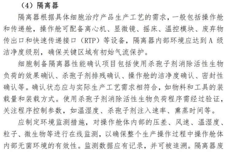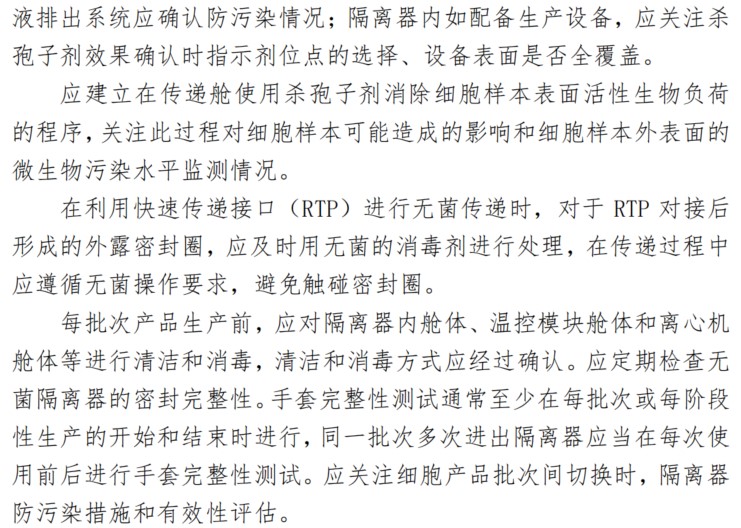 隔離器是細(xì)胞治療產(chǎn)品生產(chǎn)的常見(jiàn)設(shè)備,是無(wú)菌生產(chǎn)的必要條件,《指南》中對(duì)隔離器的要求主要包括以下幾個(gè)方面:
