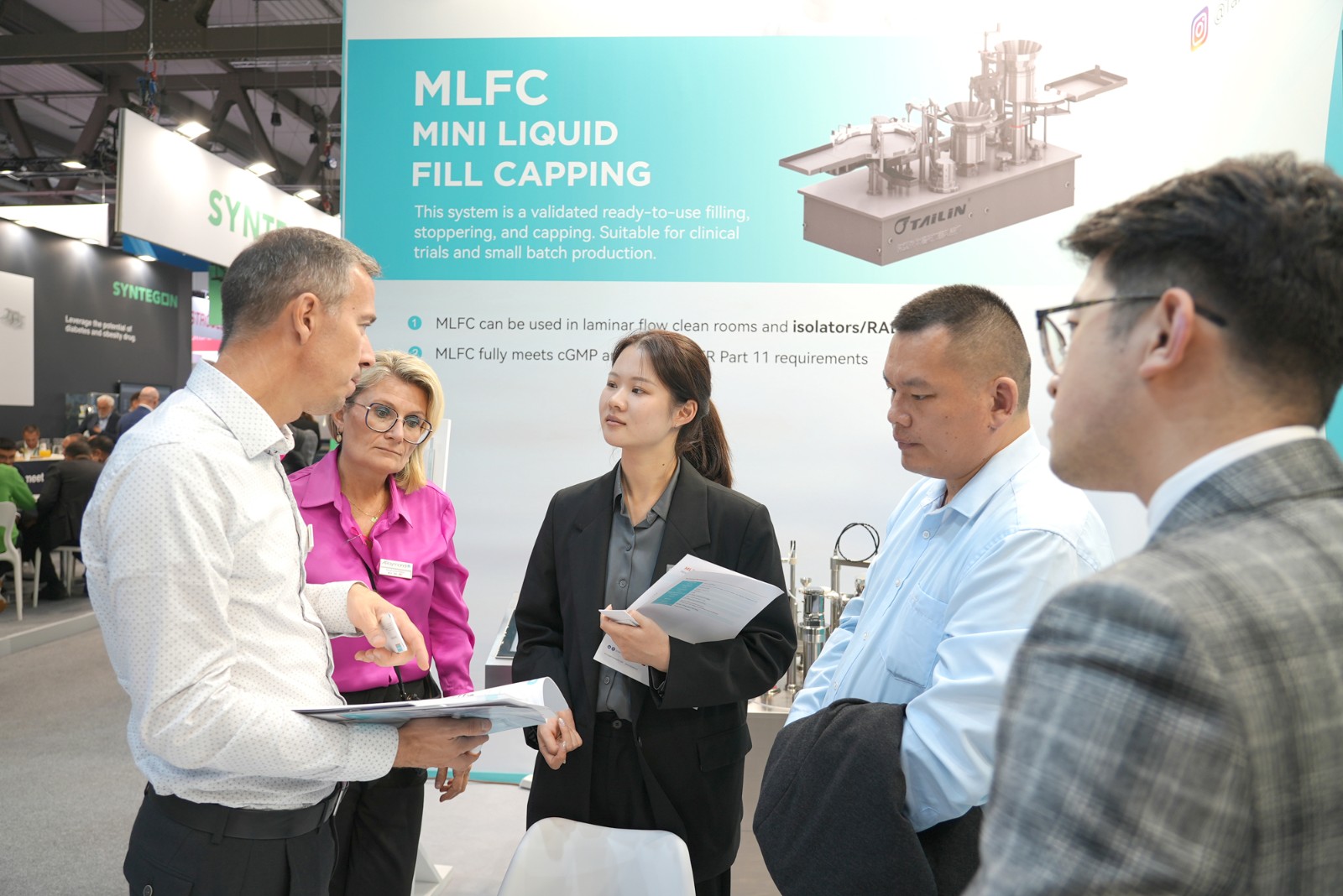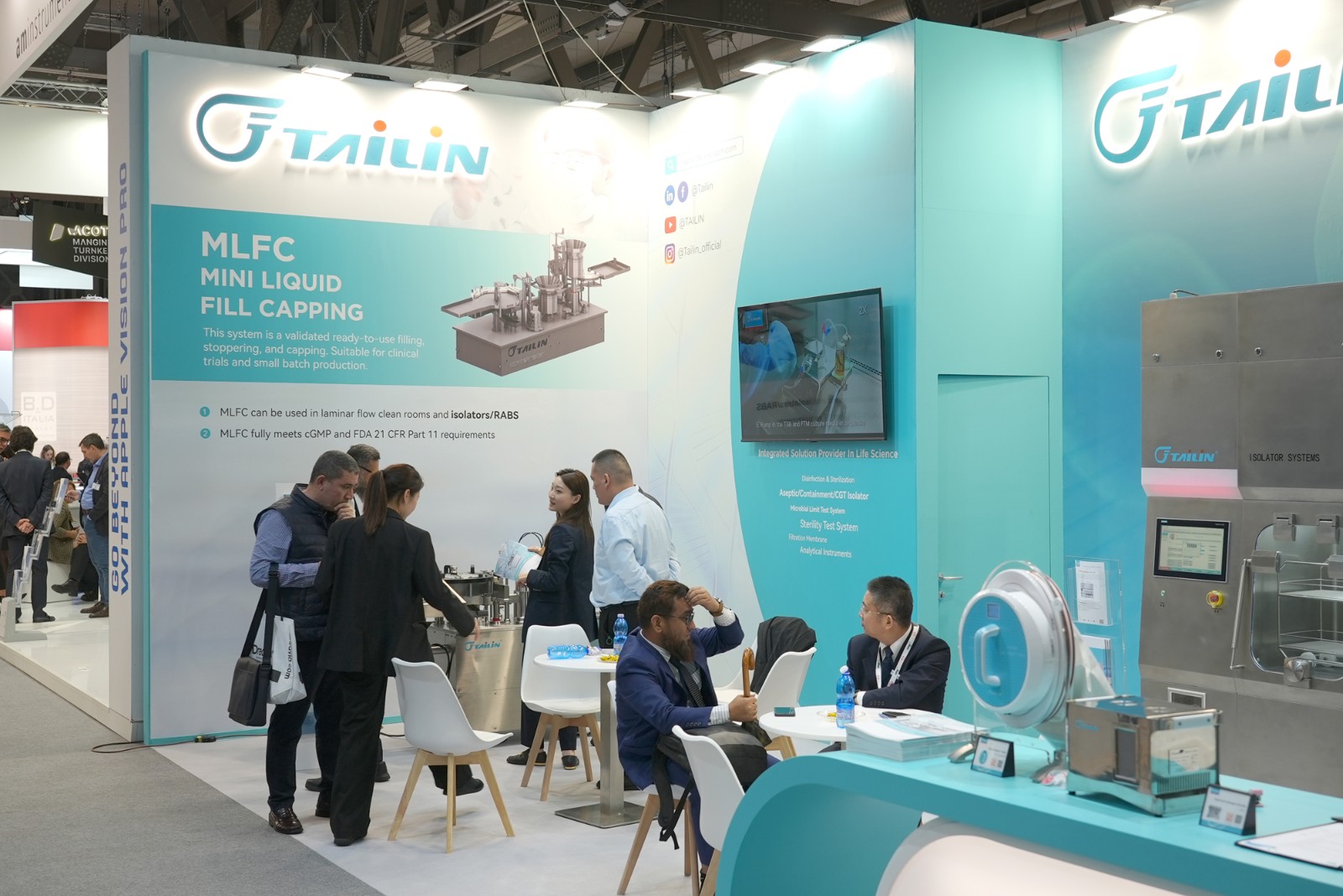 泰林生物作為生命科學(xué)領(lǐng)域“創(chuàng)新研發(fā)”和“新質(zhì)生產(chǎn)力”的代表,攜其旗艦產(chǎn)品無菌檢查隔離器、手套完整性測試儀、全自動菌落計(jì)數(shù)系統(tǒng)、智能集菌儀、微生物檢驗(yàn)儀、濾芯測試儀等產(chǎn)品亮相,為行業(yè)呈現(xiàn)了一場數(shù)智科技場景成果盛宴。此次在海外展會首次璀璨亮相的微型液體灌裝機(jī),以其卓越的即用型灌裝加塞軋蓋系統(tǒng)ML FC,成為了全場矚目的焦點(diǎn)。MLFC極致縮小尺寸,以適合隔離器化趨勢,滿足客戶在C級背景環(huán)境進(jìn)行無菌灌裝的需求。泰林生物依托數(shù)智科技,創(chuàng)新運(yùn)用自動化、AI等新興技術(shù),深入挖掘用戶需求,打造出全場景全流程自動化、數(shù)智化解決方案,滿足生命科學(xué)與高端裝備高質(zhì)量發(fā)展要求。